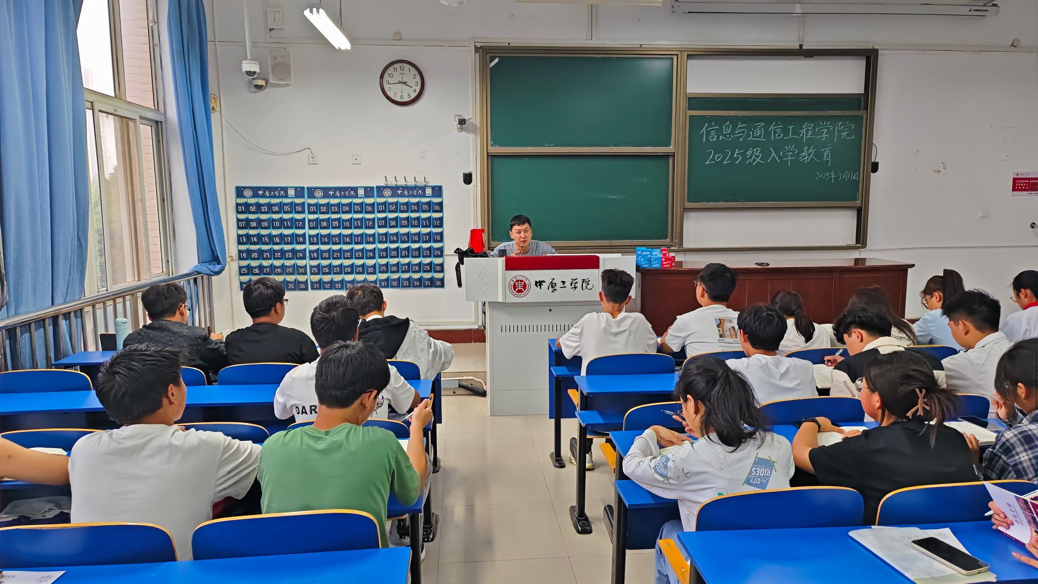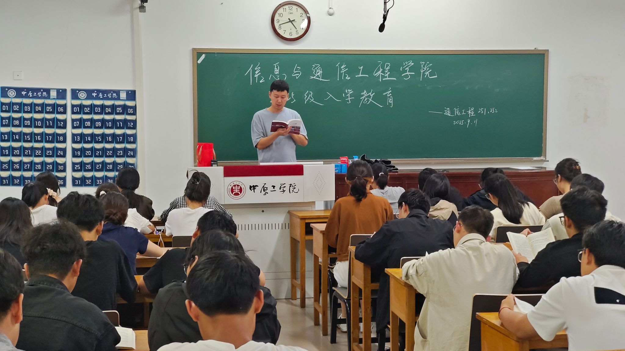为帮助2025级新生尽快适应大学环境、明确学习目标、规范日常行为,9月11日下午,学院在龙湖校区3号教学楼组织开展2025级新生入学教育暨学生手册专题宣讲会。本次会议由学院新生辅导员魏晓宇老师主持,2025级全体新生参加。